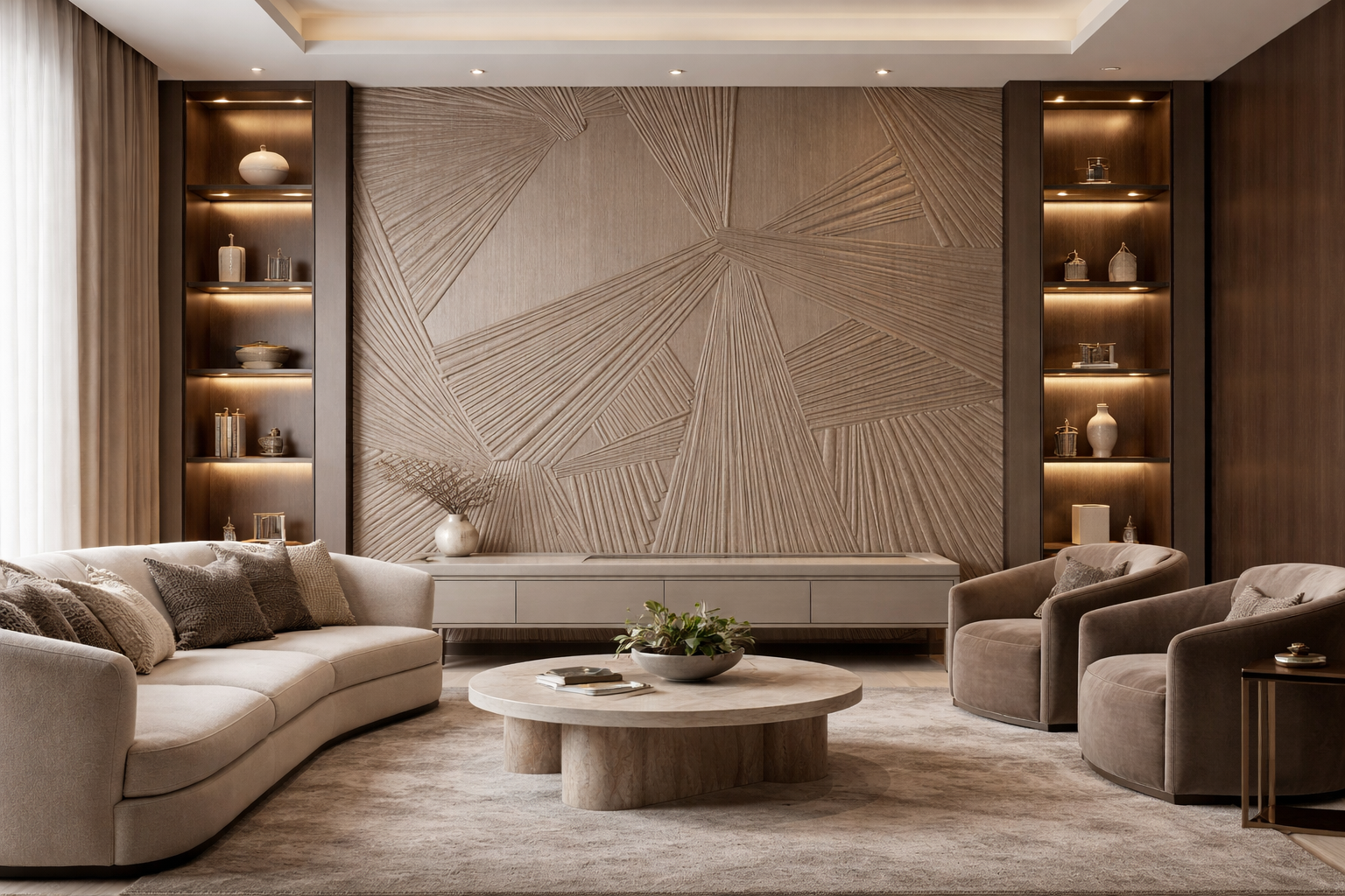 Grooved veneers are decorative panels featuring precisely carved linear grooves that add texture and rhythm to a surface. These subtle lines enhance depth and dimension, making walls or panels feel more dynamic while maintaining a clean and modern aesthetic.