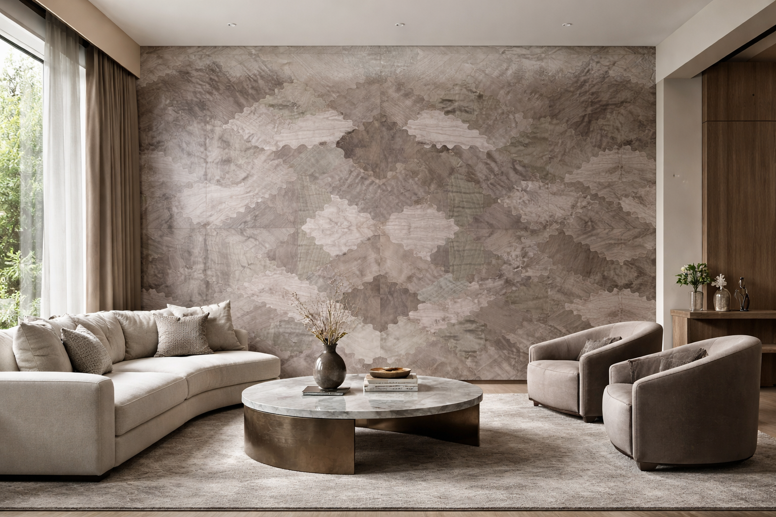 Laser cut veneers are decorative veneer panels crafted using precise laser technology to create intricate patterns and detailed designs. These veneers add a refined and artistic element to interiors, allowing light, shadow, and texture to enhance the visual depth of walls, partitions, or panels.